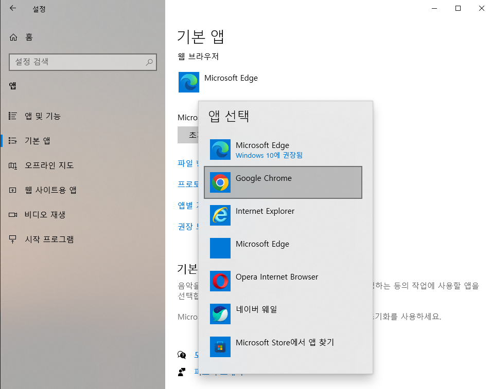 8. 목록에서 구글 크롬 브라우저를 클릭합니다.