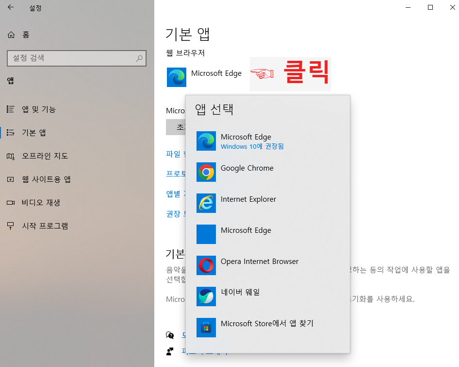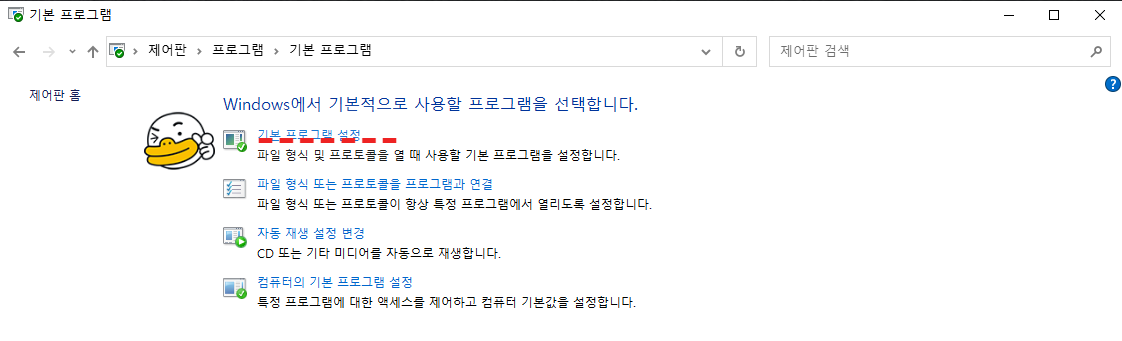5. 첫번째 줄에 있는 '기본 프로그램 설정'을 누르세요.